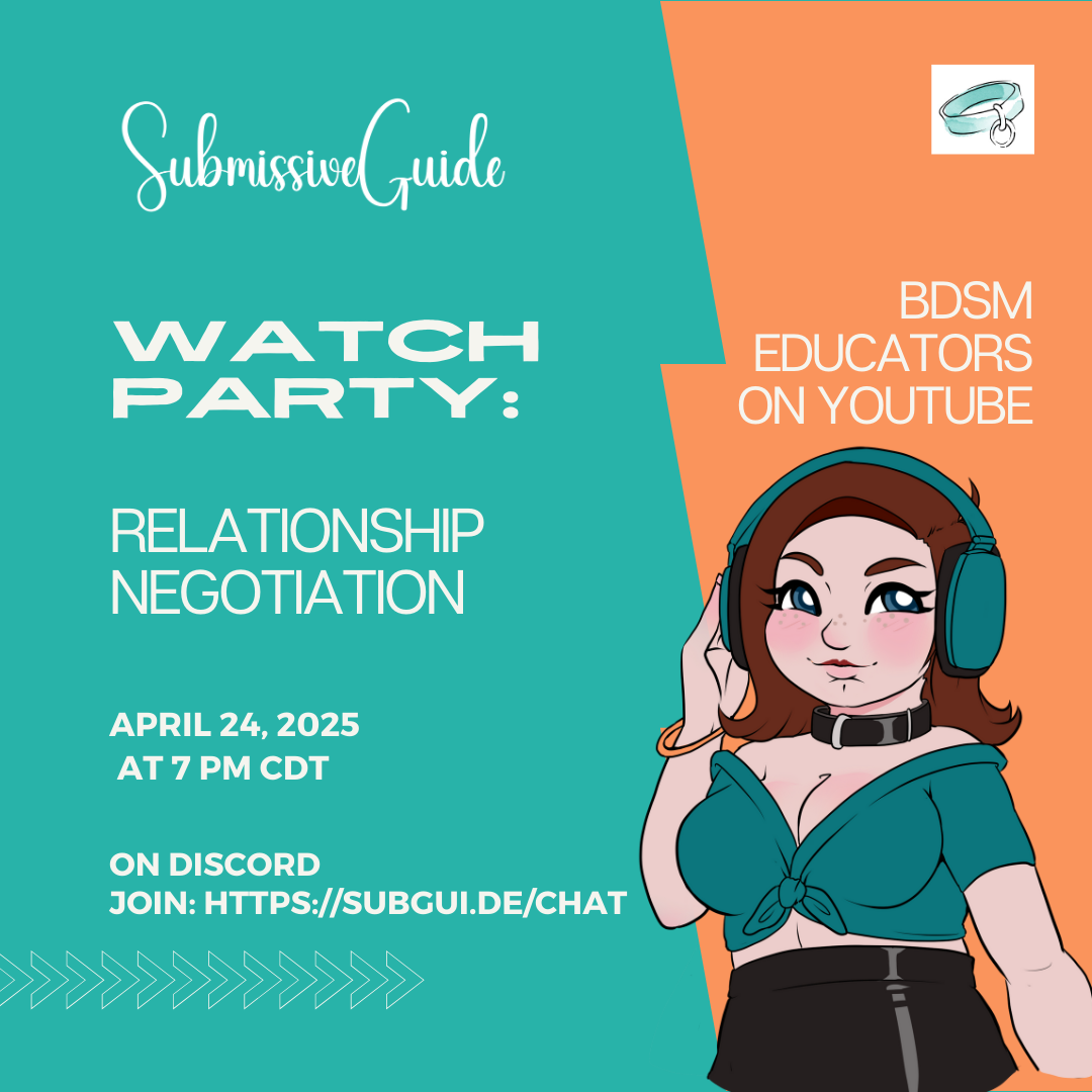 We’re hosting a monthly watch party on our Discord server every month. We’ll watch BDSM educators’ videos together and dive into a guided discussion afterward. Whether new to submission or well-experienced, this is a great opportunity to learn, ask questions, and connect.